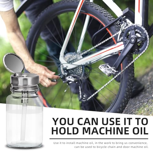 - Applicable scenarios are abundant!!! This press-on Dispenser Bottle made of glass stainless steel is sturdy and durable. Ideal for manicure, beauty, maintenance, home and more. Dispenser Bottle made of glass can hold a variety of cosmetics and liquids will not corrode.